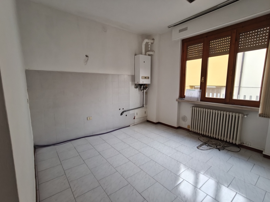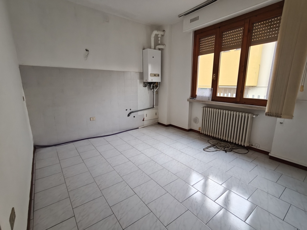 La cucina è abitabile e ospita la caldaia a gas metano recentemente sostituita; il soggiorno, separato dalla cucina, è dotato di una porta finestra che si affaccia su un piccolo balconcino prospiciente la via principale.