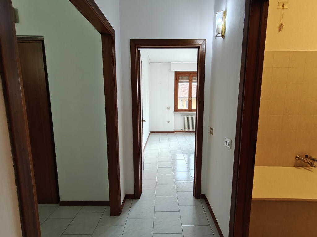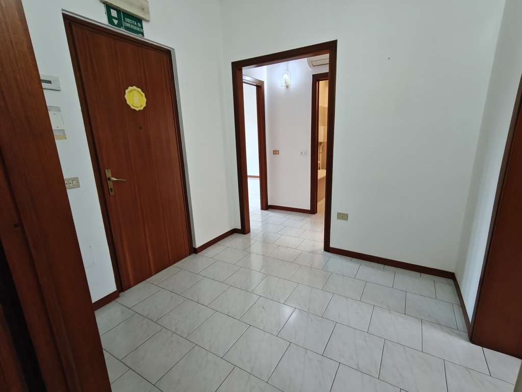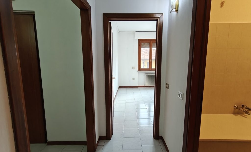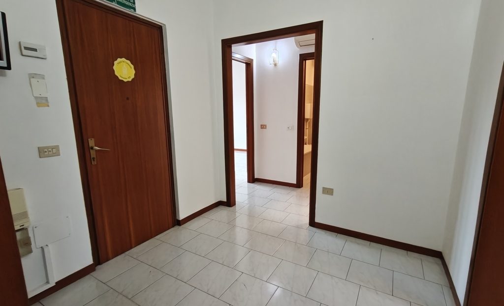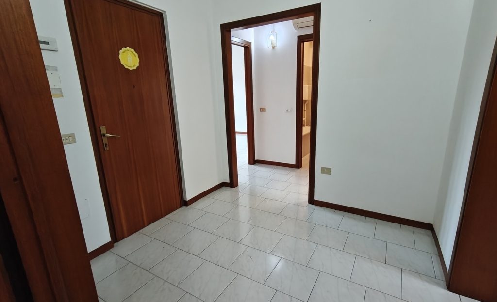 Nell’ampio atrio d’ingresso si trovano gli accessi a tutte le stanze: sulla destra è stata organizzata la zona giorno, al centro il disimpegno, mentre sulla sinistra si sviluppano la zona notte e il bagno.