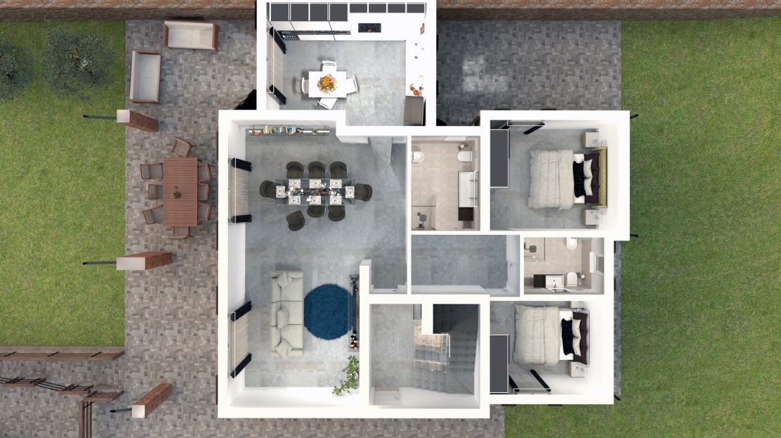 La mancanza di finiture permette all’acquirente di terminare la casa con la dimensione delle stanze e la loro collocazione come meglio si adatta alle proprie esigenze. Anche i materiali e i colori possono essere scelti a proprio piacimento.