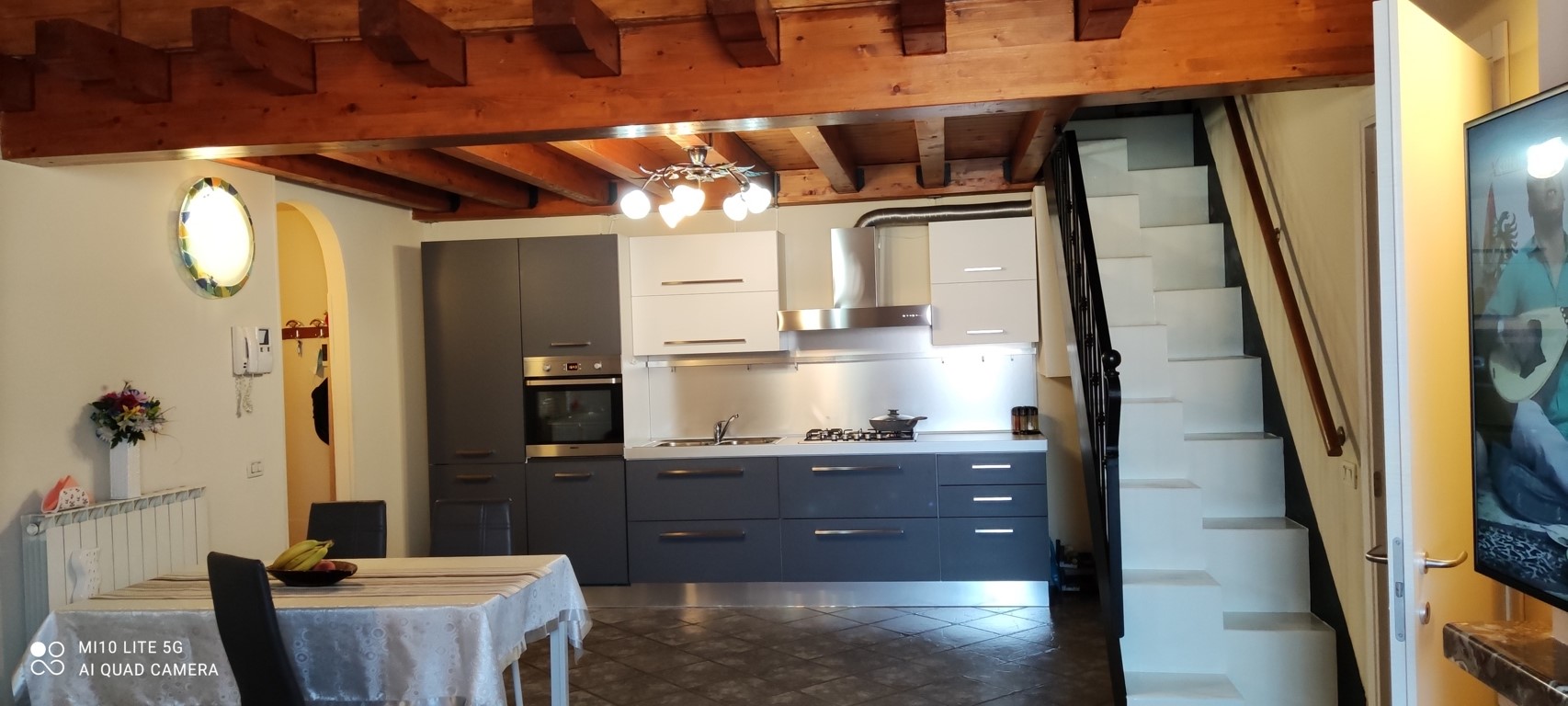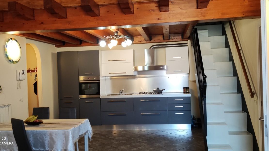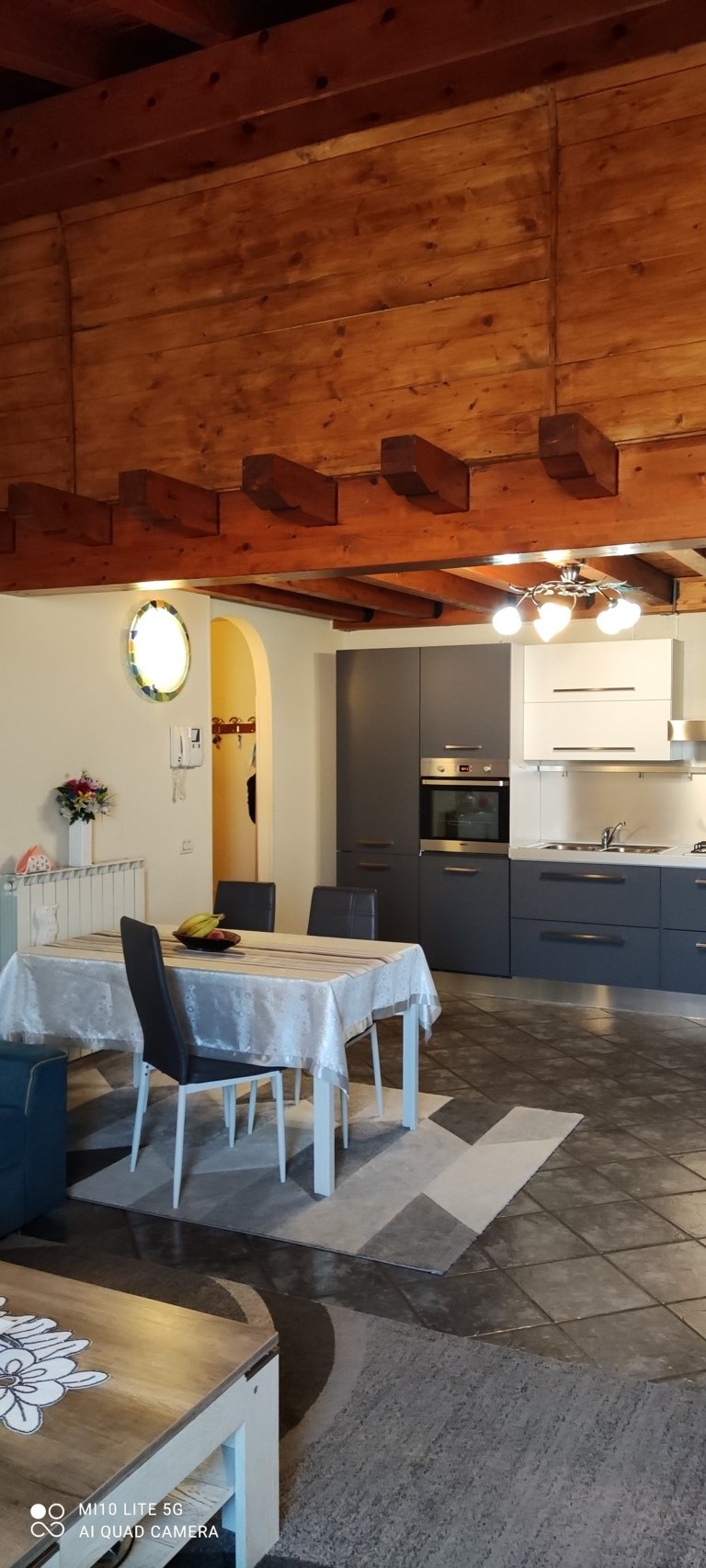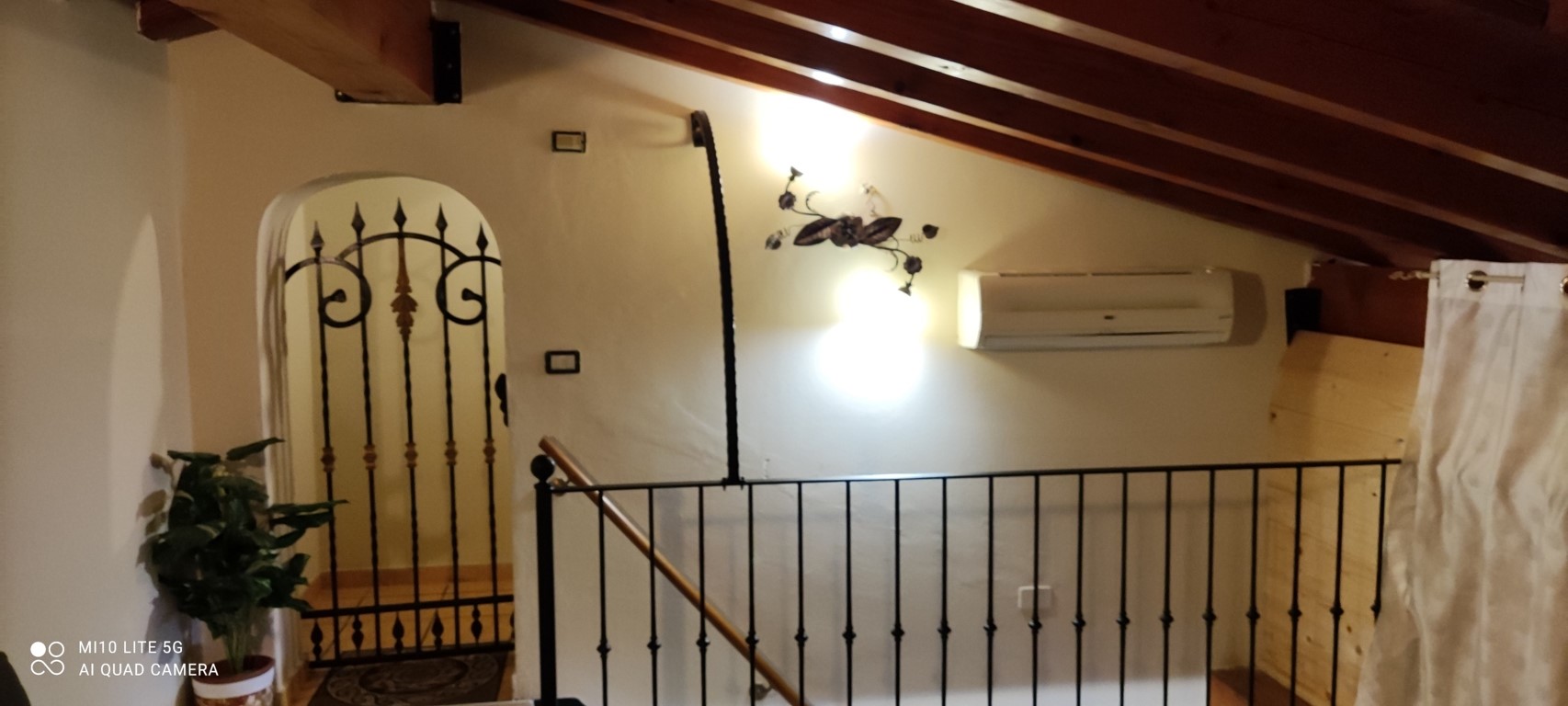 nella zona giorno troviamo un’ampia sala con camino e angolo cottura, soppalco con ripostiglio;